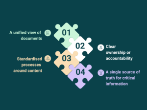 Instead of documents scattered across Teams, SharePoint, email, and drives, we bring information together in a standardised, well managed ecosystem.