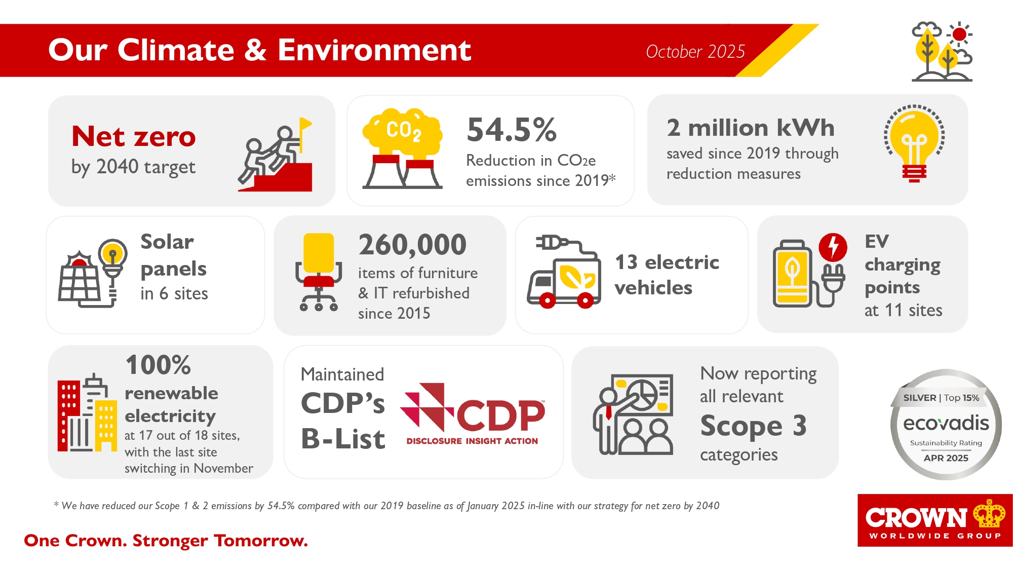We have a Net Zero target for Scope 1 and 2 emissions by 2040 relative to a 2019 baseline with interim targets of 45% reduction by 2025 and 65% by 2030. By the end of 2024, we achieved a 54.4% reduction in these emissions against a 2019 baseline, exceeding our target.